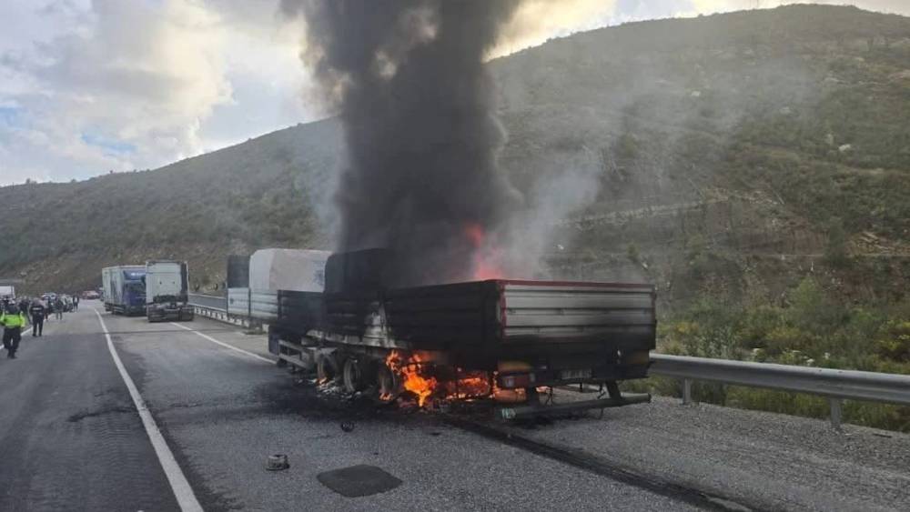 Manavgat’ta mermer yüklü tır alev alev yandı