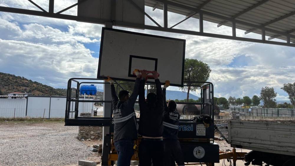 Milas Belediyesi basketbol potalarının kurulumlarına başladı